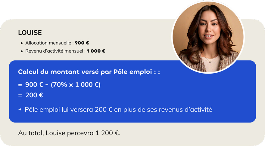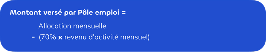 Pôle emploi déduit 70 % des revenus d'activités déclarés à l'Urssaf du montant mensuel de l'allocation. C'est le résultat de ce montant qui se cumulera aux revenus d'activité.